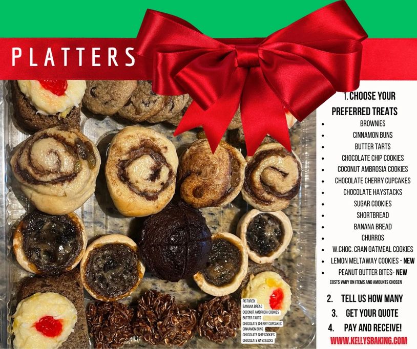 Contains Butter Tarts, Cinnamon Buns, Regular or Coffee Churros, Banana Bread slices